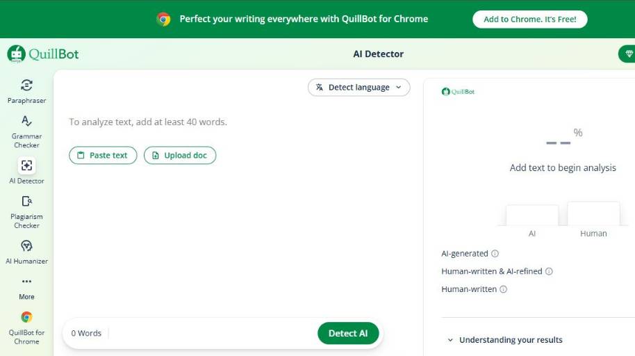 I find the AI content detector by QuillBot to be a handy tool for making quick assessments. That said, I am okay with it. Sometimes you may only need a hint and not a comprehensive investigation. The output is simple to understand and does not take a lot of time. However, as with any tool, the output is a suggestion and not a fact. You need to apply your discretion and judgment.