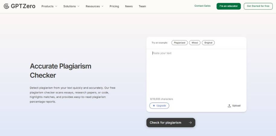 GPTZero is a plagiarism and content analysis tool specifically built for detecting AI-generated content. It scans the text to identify potential plagiarism and to predict the likelihood that the text was generated by a machine. Essentially, it’s aiming to address the two most frequent questions every editor has: Did they copy this? And did a robot write this?