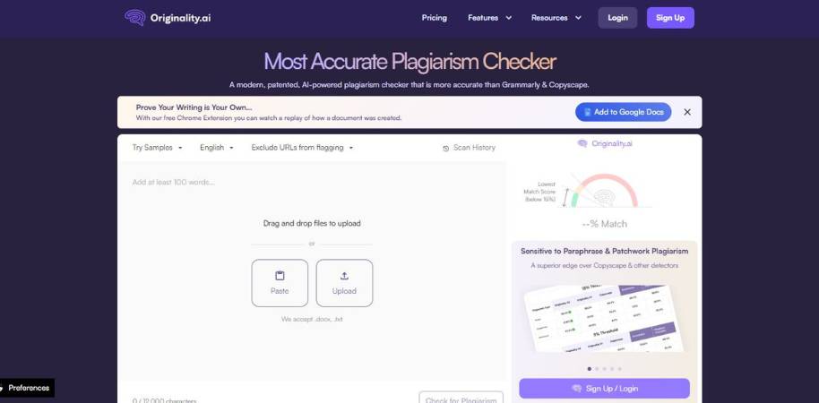 - Bulk or Site Analysis: For larger organizations, Originality.ai allows for the analysis of multiple documents or entire websites.