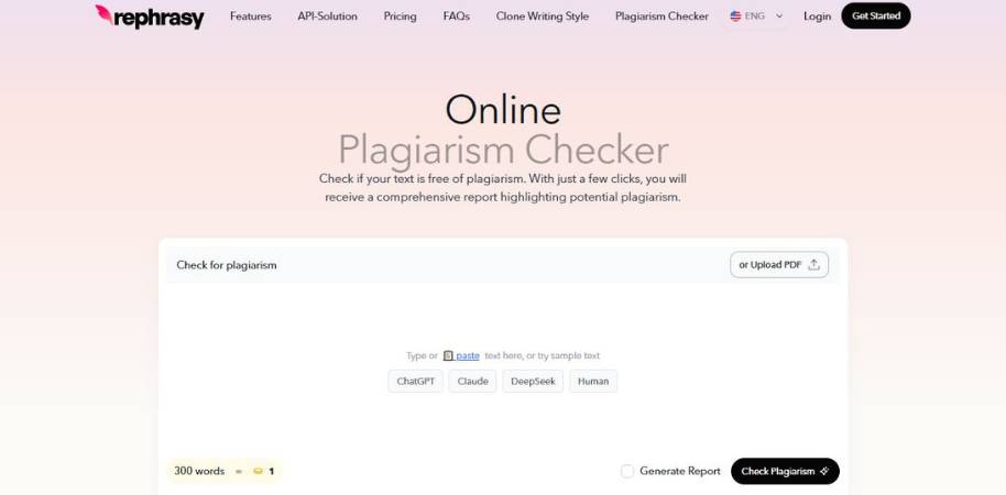 - Document Importer: You can import a PDF or a document to check for plagiarism.
