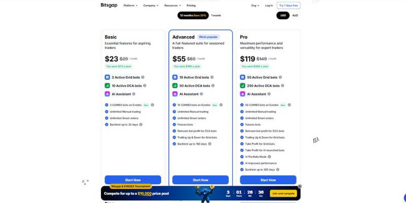 Bitsgap AI Crypto Trading Bot Pricing