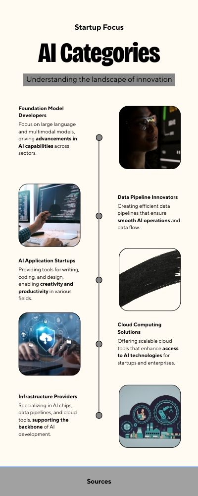 Big tech companies are investing in foundation models, AI infrastructure and developer tools. Startups are receiving venture capital for building AI-enabled applications and platforms.
