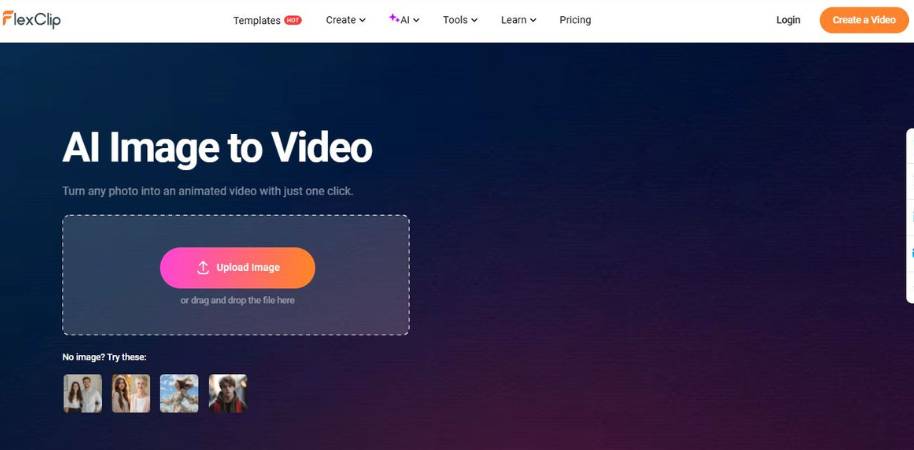 The core concept of FlexClip’s AI image-to-video feature is pretty straightforward. It’s all about converting still images into moving animated videos without deep video editing. Simply put, you provide images and some context, and then the AI will try to put them together with animations, transitions, and other video elements. It’s not video editing in the truest sense. It’s more like making a quick pictorial with elements you already have. Here are the key features of FlexClip’s AI image-to-video generator: