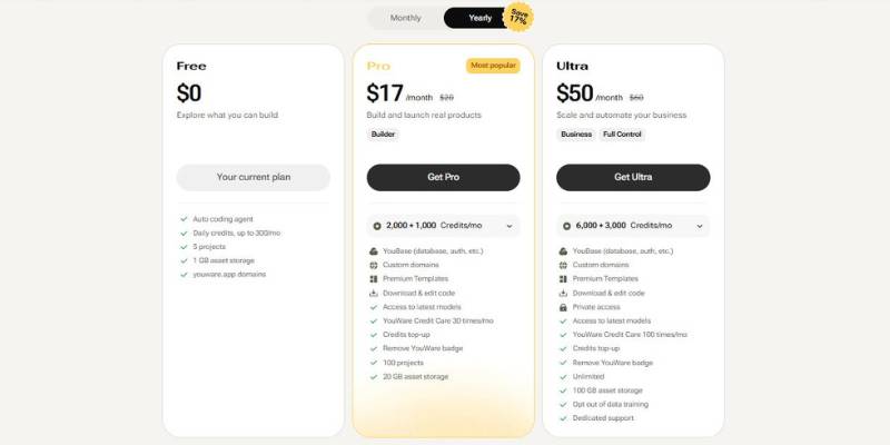 YouWare AI App Builder Pricing